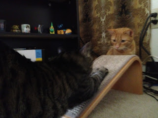 Trying out the new scratcher.